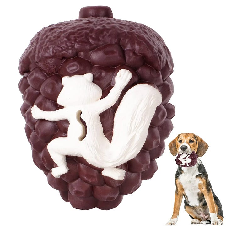 This looks like a real pine cone but is constructed out of chew-resistant material. Its textured surface is perfect for teething puppies, cleaning their teeth while they chew.